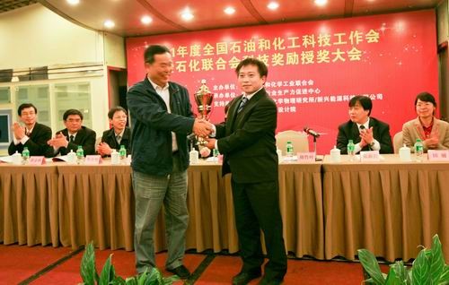 2011年10月26-28日,由中国石油和化学工业联合会组织承办的“2011年度全国石油和化工科技工作会暨石化联合会科技奖励授奖大会”于四川成都隆重召开。甲醇制取低碳烯烃(DMTO)技术被授予“2011年度中国石油和化学工业技术发明特等奖”。中科院大连化物所副所长、新兴能源科技有限公司董事长刘中民领取了奖杯和荣誉证书,并为大会作了精彩的《甲醇制烯烃技术发展及其商业化应用》报告,新兴公司总经理吕志辉、陕西煤业化工技术研究院院长闵小建共同应邀出席。