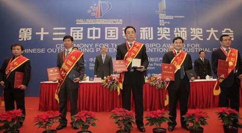 11月8日下午,“第十三届中国专利奖颁奖大会”在北京举行。本届中国专利奖共评选出中国专利金奖项目15项,中国外观设计金奖项目5项,中国专利优秀奖项目177项,中国外观设计优秀奖项目35项。中国科学院大连化学物理研究所由齐越、刘中民、吕志辉、王华、何长青、许磊、张今令、王贤高发明的由甲醇或/和二甲醚生产低碳烯烃的方法专利获第十三届中国专利金奖,是中科院获得的唯一专利金奖。刘中民副所长参加了颁奖大会并代表专利权人和发明人上台领奖。