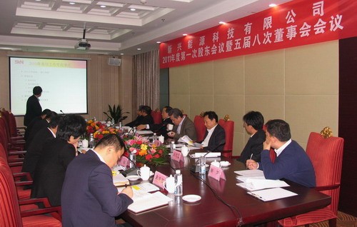2011年2月19日,新兴能源科技有限公司在陕西省安康市明江国际酒店召开了2011年度第一次股东会议暨第五届董事会第八次会议。会议由新兴公司董事长刘中民主持。出席会议的有陕西煤业化工集团有限责任公司董事长华炜,中国科学院大连化学物理研究所所长张涛,正大煤化有限公司董事长谢炳,新兴能源科技有限公司董事长刘中民,董事尚建选、闵小建、靳辉,董事总经理吕志辉,监事会成员杜国良、贠公法、曹善海。新兴公司副总经理马行美、财务总监杨璇、副总经理宋双田列席了会议。