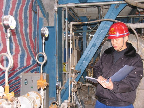 DMTO工业化试验现场工程师在检查输水器装置-新兴能源科技有限公司