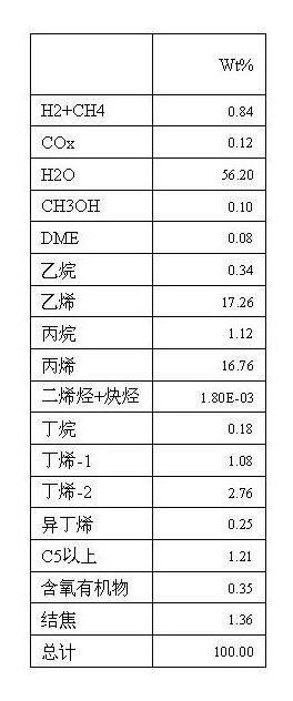 在上述反应条件下,甲醇单程转化率大于99.8%,反应器出口组成如下表所示: