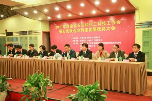 2011年10月26-28日,由中国石油和化学工业联合会组织承办的“2011年度全国石油和化工科技工作会暨石化联合会科技奖励授奖大会”于四川成都隆重召开。甲醇制取低碳烯烃(DMTO)技术被授予“2011年度中国石油和化学工业技术发明特等奖”。中科院大连化物所副所长、新兴能源科技有限公司董事长刘中民领取了奖杯和荣誉证书,并为大会作了精彩的《甲醇制烯烃技术发展及其商业化应用》报告,新兴公司总经理吕志辉、陕西煤业化工技术研究院院长闵小建共同应邀出席。