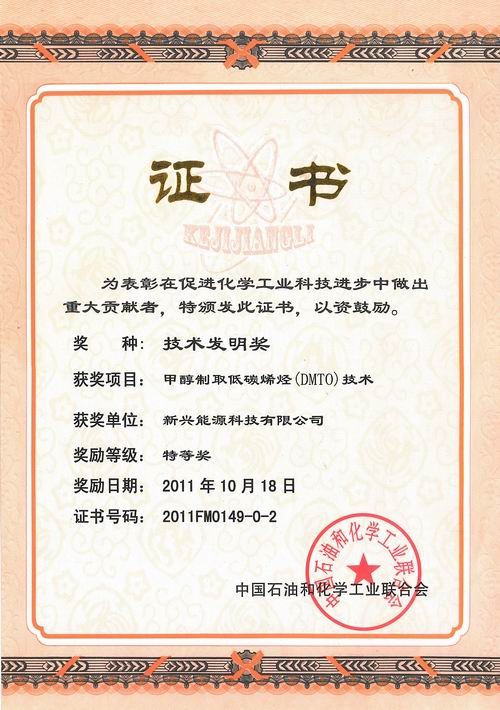 日前,欣闻新兴能源科技有限公司“甲醇制取低碳烯烃(DMTO)技术”项目获2011年度中国石油和化学工业技术发明特等奖,陕西煤业化工集团科技发展部特向我公司发来贺信,向我公司党政领导、项目组成员及全体科技工作者表示热烈祝贺。