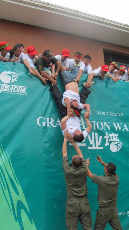 在一天半一夜的拓展培训活动过程当中,整个团队分别参加了信任背摔、有轨电车、空中断桥、空中抓杠、风雨人生路、急速60秒、七巧板、翻越毕业墙等培训项目。“信任背摔”增强了个体对团队的信任;“有轨电车”和“急速60秒”让大连充分感受到策划、目标、协作和执行力之间的关系;“空中断桥”和“空中抓杠”挑战生命极限,挖掘个人潜能;“七巧板”让大家体会到沟通、资源与领导力之间的关系,充分体现团队合力作战对项目成败的决定性作用;“风雨人生路”让大家有一颗感恩的心,善待身边并肩作战的战友;“翻越毕业墙”是团队合力的一次集中爆发……