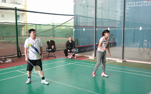 九点整,随着新兴公司总经理吕志辉同志的一声令下,振奋人心的争夺赛开始了。羽毛球场馆内,男选手生龙活虎,女队员小巧灵活,各路精英尽显风采。有的队员间是棋逢对手,实力不相上下,大家都使出浑身解数,旁边观战的同事看的是惊心动魄,纷纷为自己的队员呐喊助威。尽管有的对手间可能实力相差较为悬殊,但大家都本着永不言败,不抛弃,不放弃的精神,坚持将比赛进行到底。